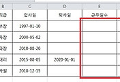 ▲ 엑셀 수식을 작성하기 위해 임의로 과거 근무 경력기간을 작성했습니다.